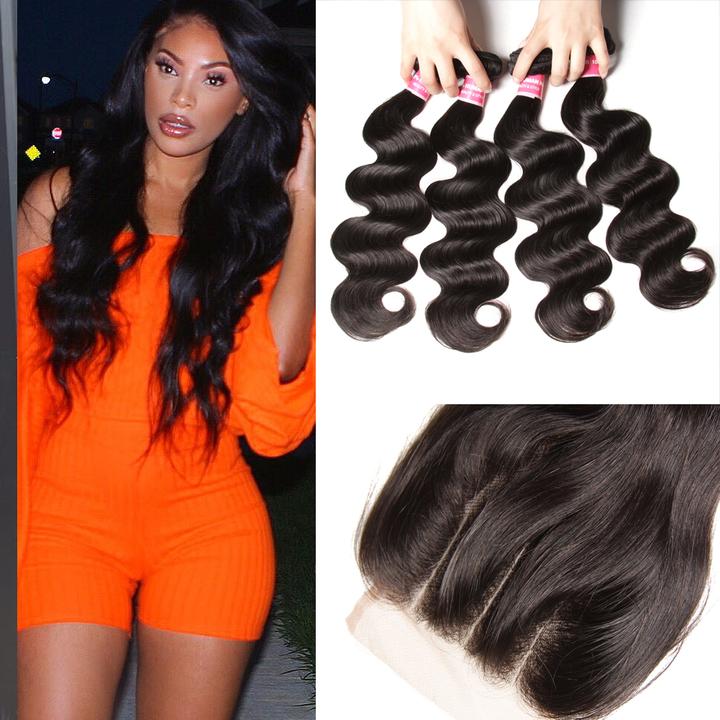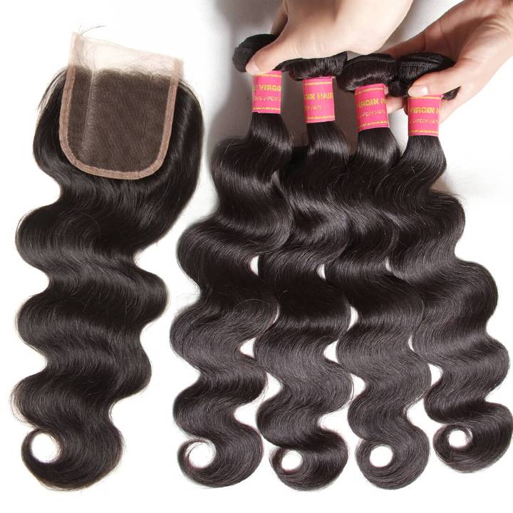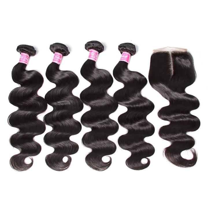 Lanfy Hair 10a Virgin Brazilian Body Wave 4 Bundles with 4*4 Lace Closure