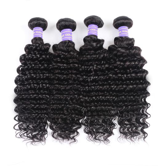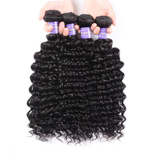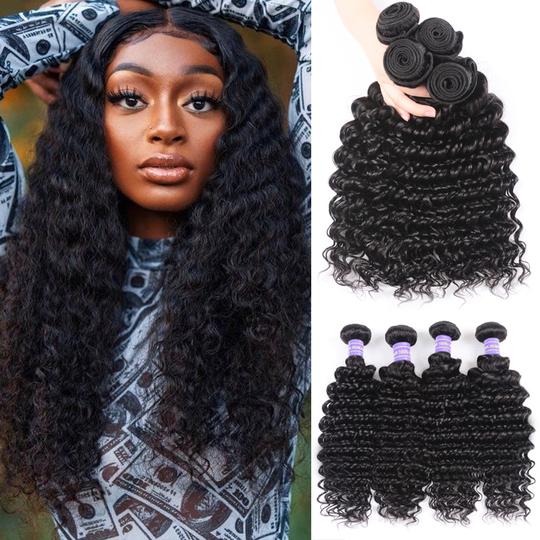 Lanfy Hair New Remy Human Hair Brazilian Deep Wave Weaves 4 Bundles 100% Human Hair Bundle Deals
