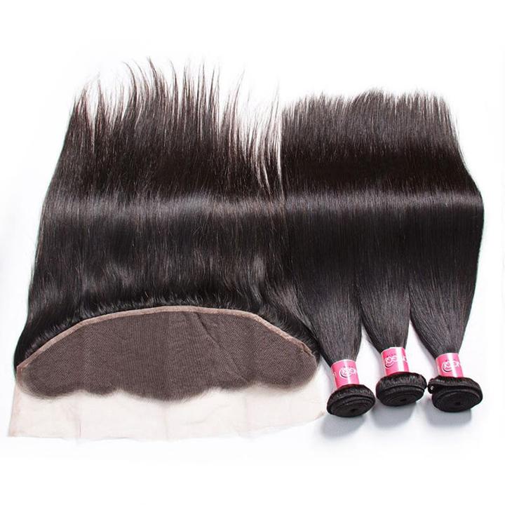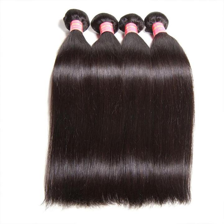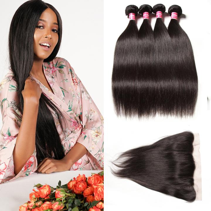Lanfy Hair Brazilian 4 Bundles Straight Human Virgin Hair With Lace Frontal Closure